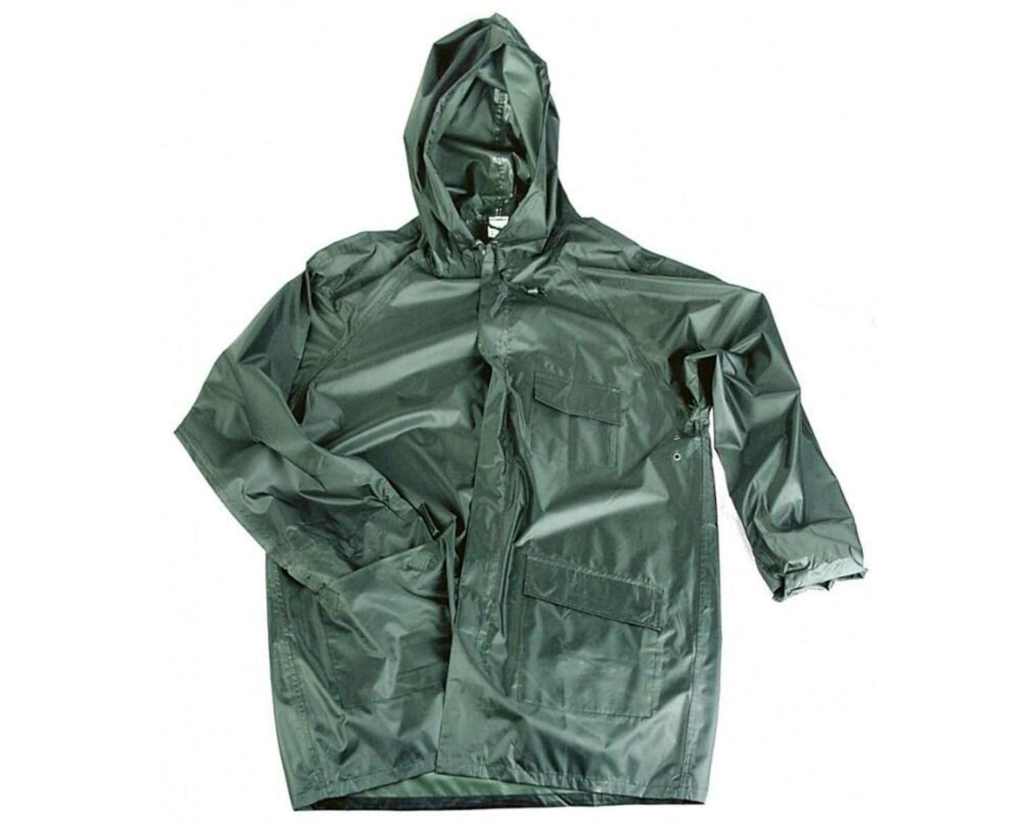 Giacca impermeabile in 100% nylon pvc con spalmatura interna, e termosaldatura alle cuciture. Cappuccio regolabile, taschino al petto e due comode tasche sul davanti, polsino interno alla manica con elastico .Chiusura centrale con zip e velcro.