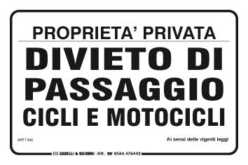 Proprietà privata divieto di passaggio cicli e motocicli