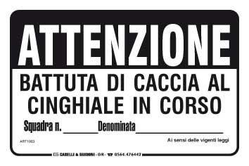 Attenzione battuta di caccia al cinghiale in corso squadra n. denominata