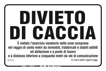 Divieto di caccia è vietato l'esercizio venatorio nelle zone comprese nel raggio di cento metri da immobili, fabbricati e stabili adibiti ad abitazione o a posti di lavoro e a distanza inferiore a cinquanta metri da vie di comunicazione