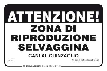 Attenzione zona di riproduzione selvaggina cani al guinzaglio