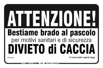 Attenzione ! Bestiame brado al pascolo per motivi sanitari e di sicurezza divieto di caccia