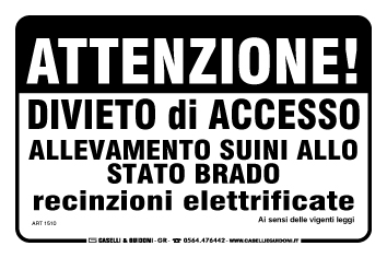 Attenzione! Divieto di accesso allevamento suini allo stato brado recinzioni elettrificate