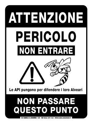 Attenzione pericolo non entrare le api pungono per difendere i loro alveari non passare questo punto
