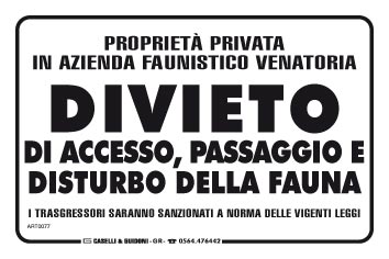 Proprietà privata in azienda faunistico venatoria divieto di accesso, passaggio e disturbo della fauna i trasgressori saranno sanzionati a norma delle vigenti leggi