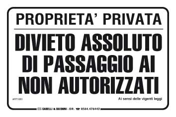 Proprietà privata divieto assoluto di passaggio ai non autorizzati