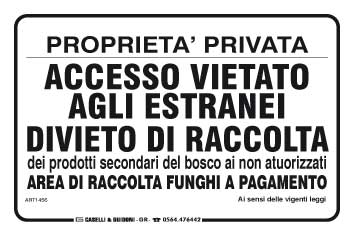 Proprietà privata accesso vietato agli estranei divieto di raccolta dei prodotti secondari del bosco ai non autorizzati area di raccolta funghi a pagamento