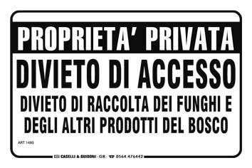 Proprietà privata divieto di accesso divieto di raccolta dei funghi e degli altri prodotti del bosco