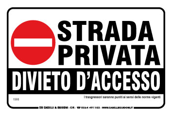 Strada privata divieto d'accesso. I trasgressori saranno puniti ai sensi delle norme vigenti.
