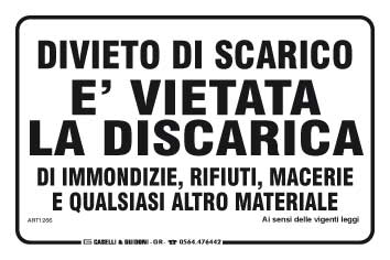 Divieto di scarico è vietata la discarica di immondizie, rifiuti, macerie e qualsiasi altro materiale